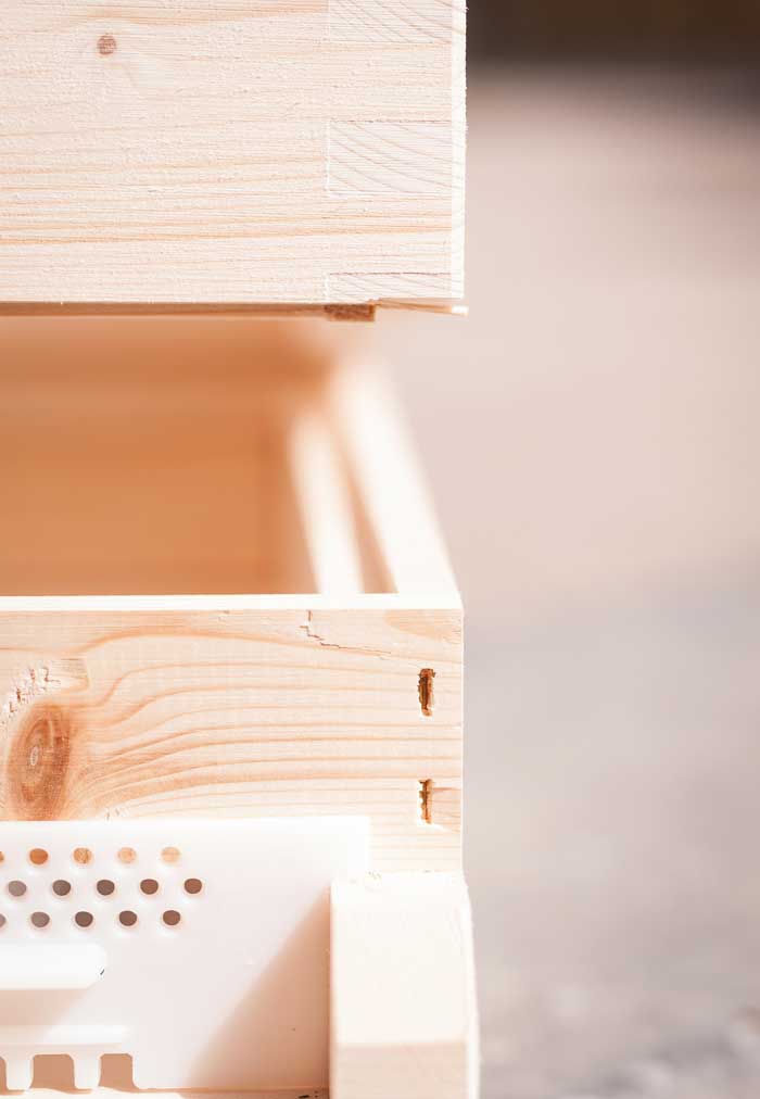 Der geschlossene Boden bietet eine optimale Basis für den individuell zusammengestellten Ablegerkasten.