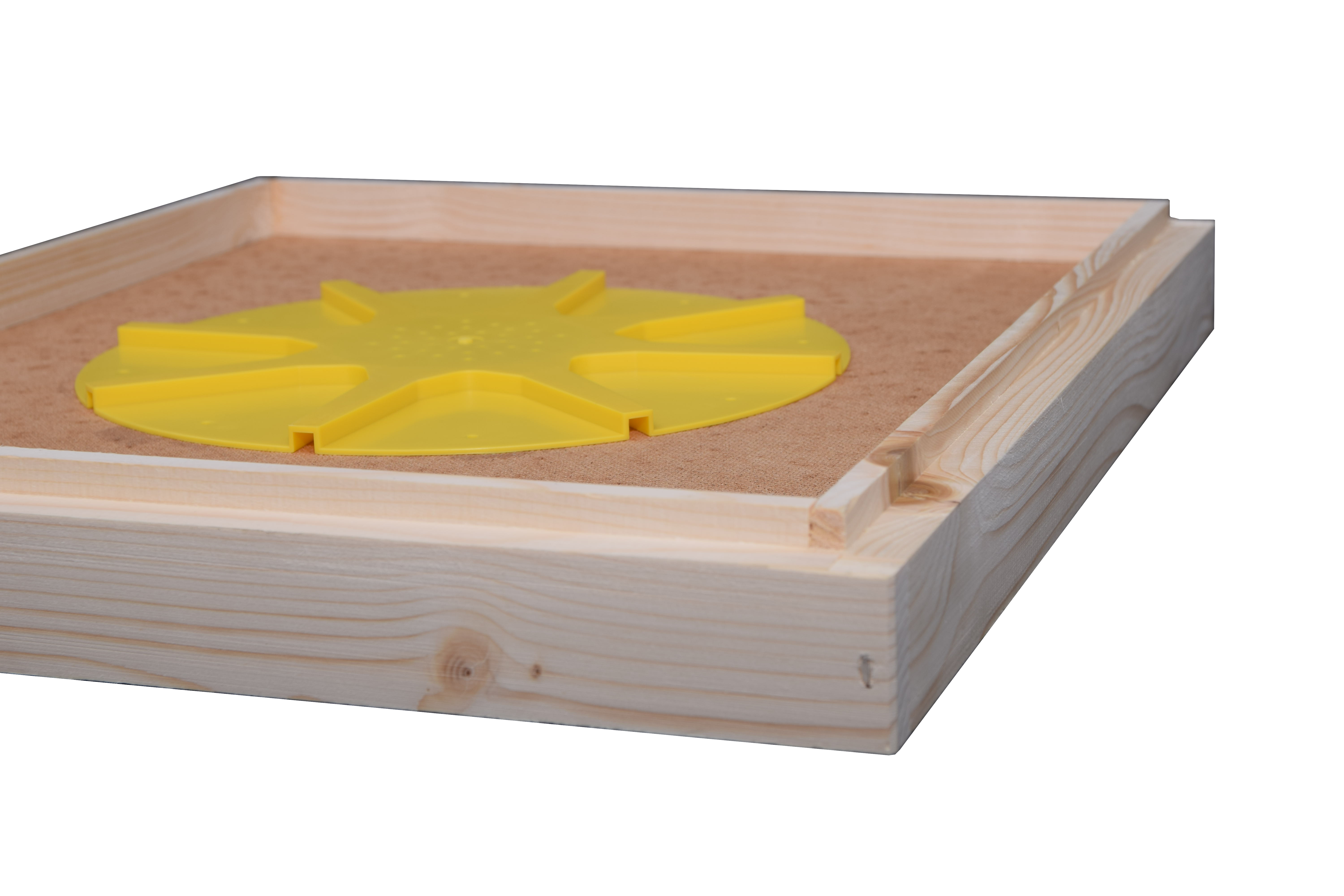 Sie enthält einen Schlitz für den Aufstieg der Bienen und einen Steg, der die Bereiche zum Aufstieg und zur Fütterung trennt.
