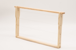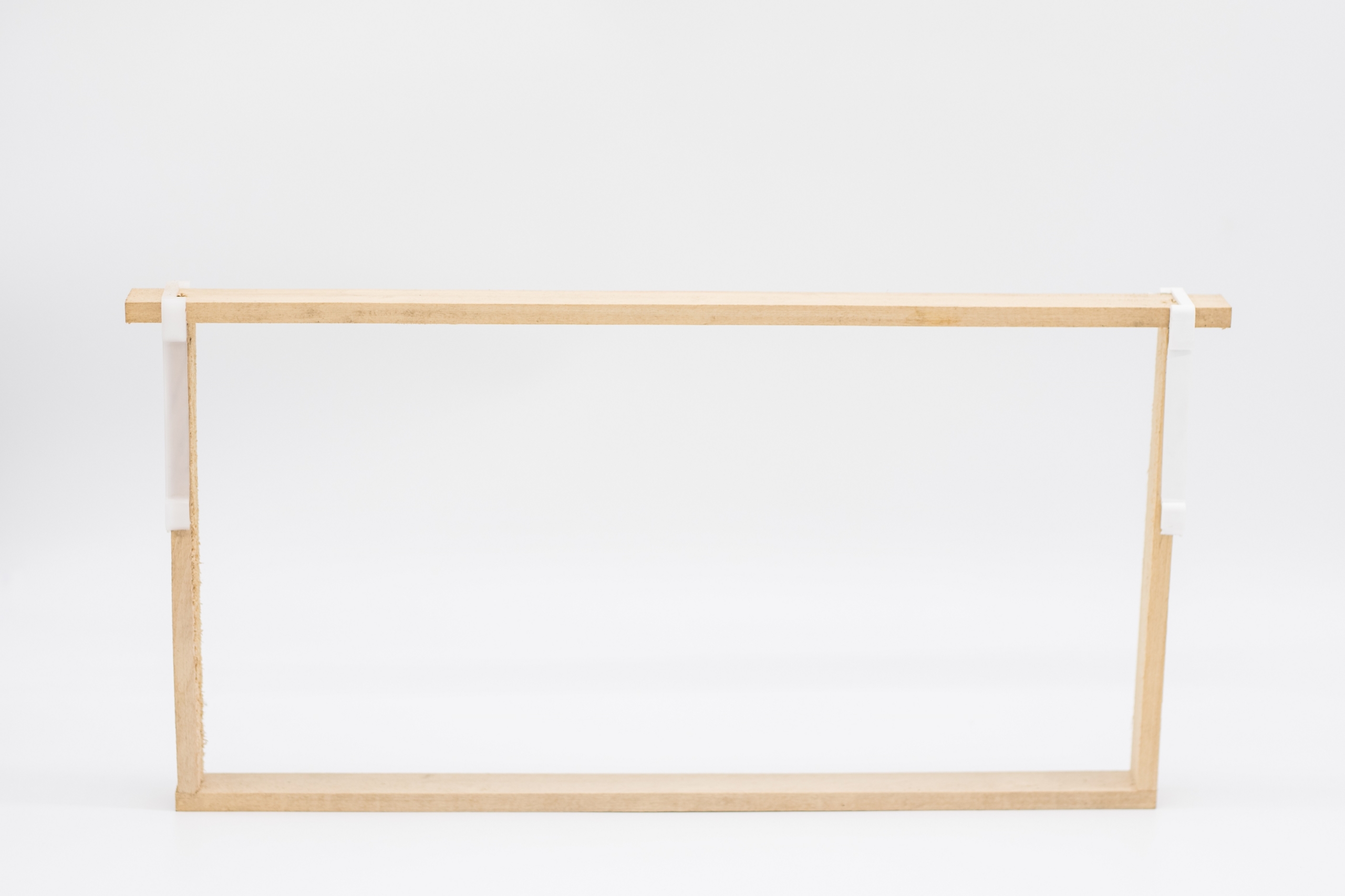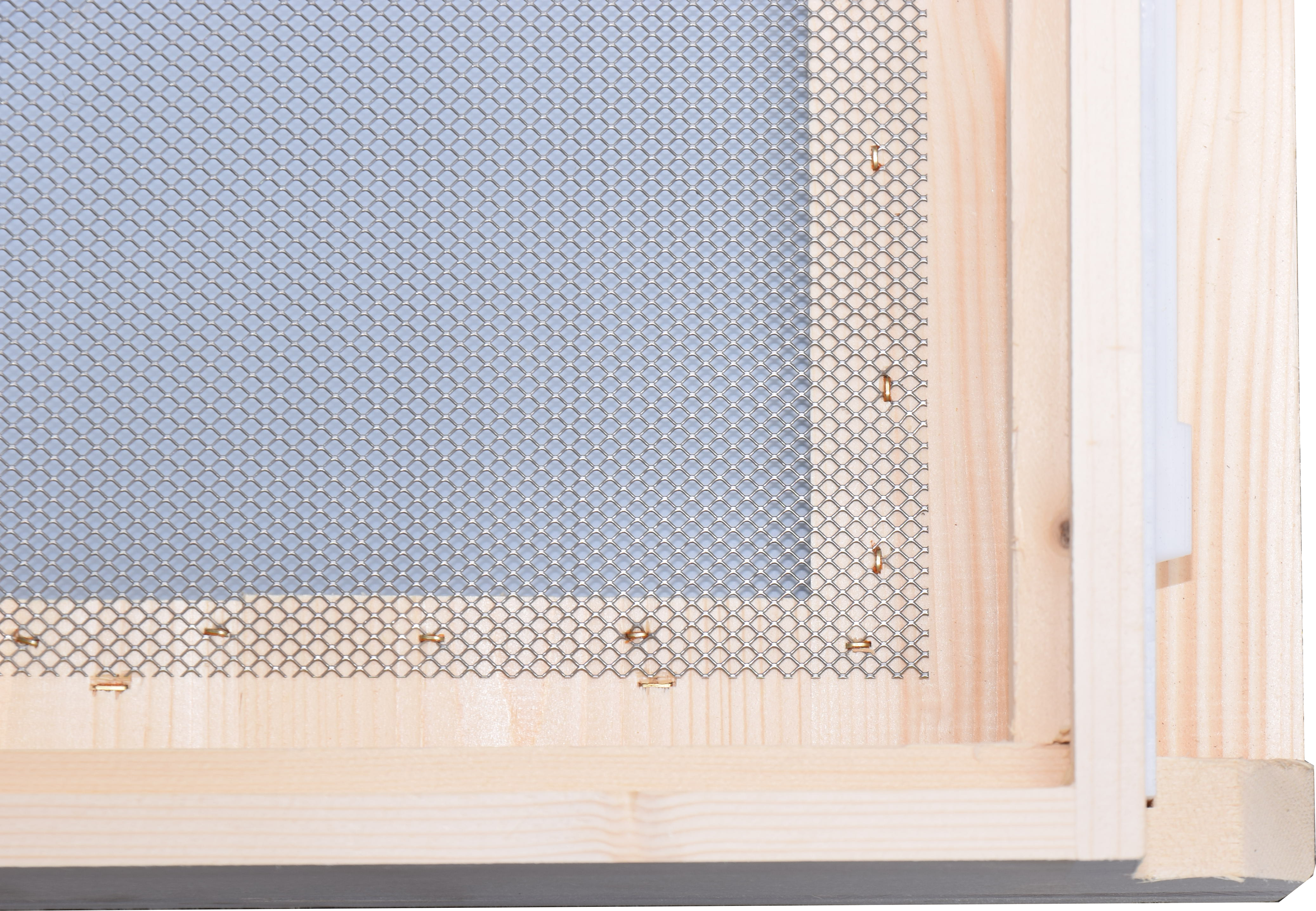 Dient als Abtrennung zwischen Brut- und Honigraum. Rahmen aus gedämpfter Buche genagelt und verleimt. Gitter aus Rundstäben, die die Bienen schonen.
