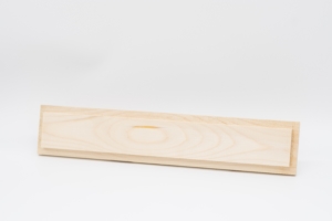 Baugleich wie die Vollzarge, nur mit einer Gesamthöhe von 175 mm. Wie eingangs erwähnt besteht die Flachzarge aus 25mm Wandstärke, ist gezinkt, verleimt und genagelt. Der Griff ist auf der Außenseite angebracht und erleichtert so das Heben der Zargen.