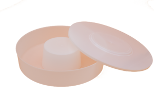 Futterschale mit Glocke und Deckel (geschlossen) Schwarmkische geschlossen – gut zu sehen ist auch der Griff mit dem Stoffband auf der Oberseite